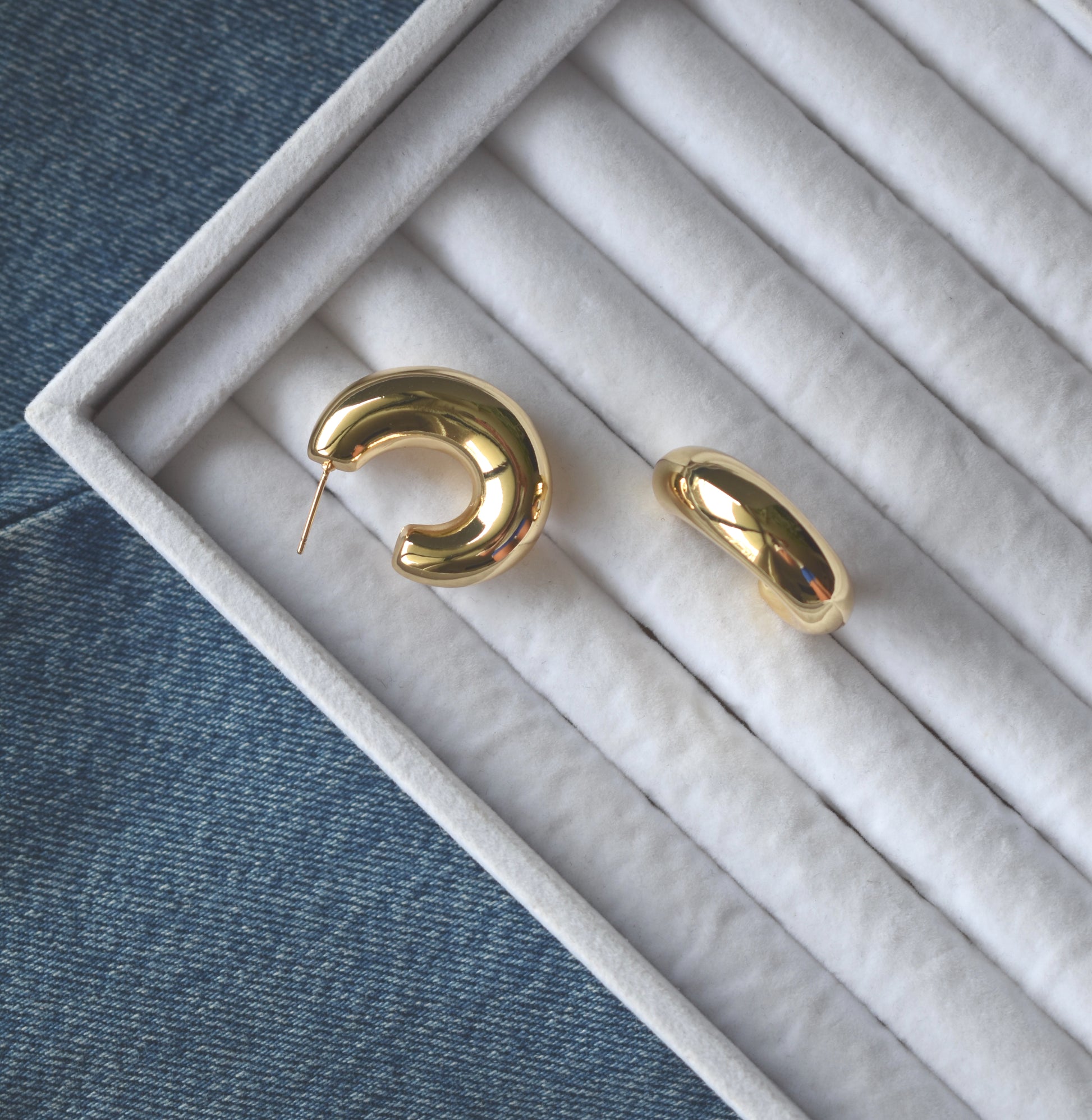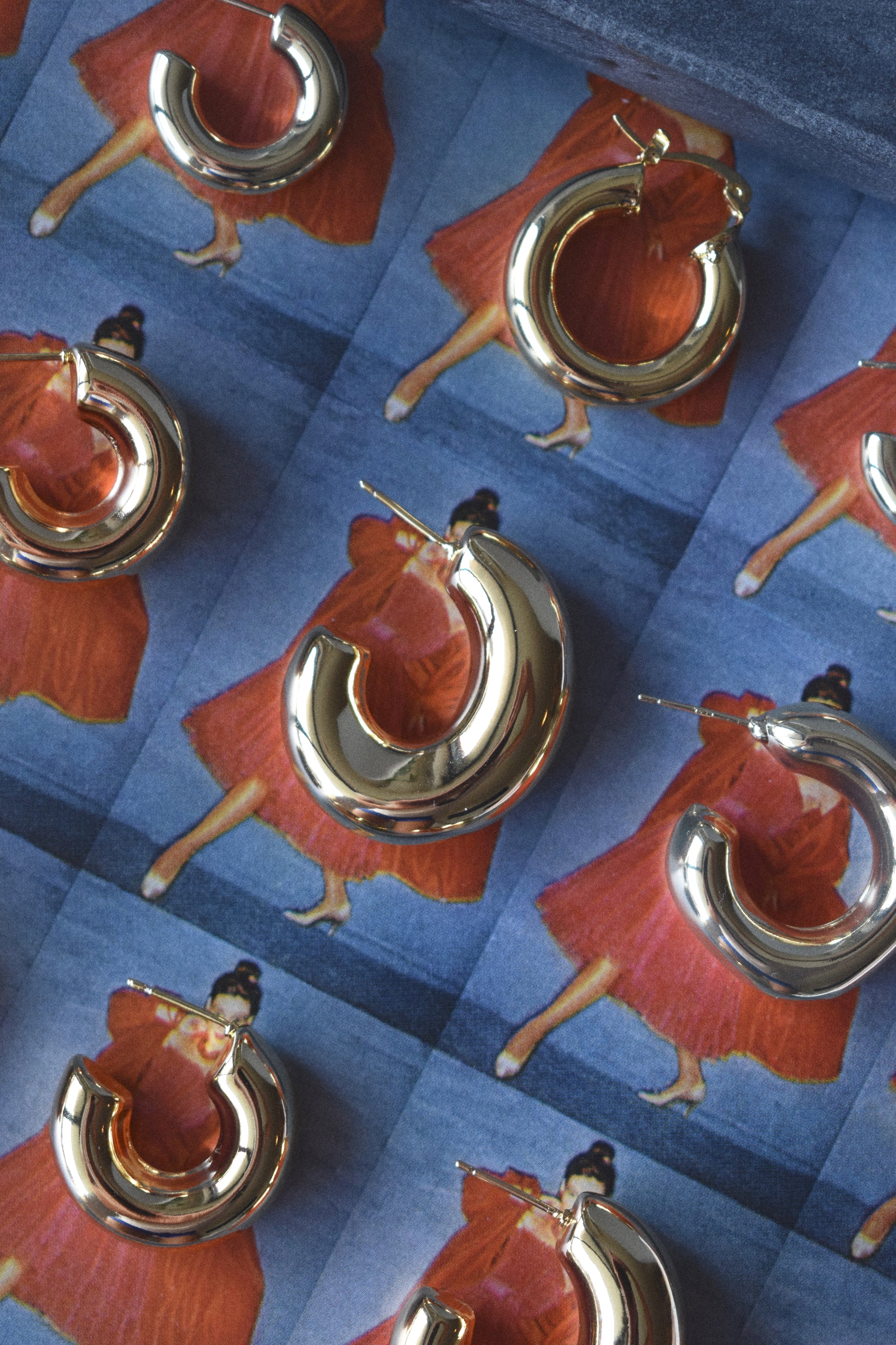 Your new signature hoop. Classic yet contemporary, with a subtle arc that sets it apart from the others in your jewelry box.