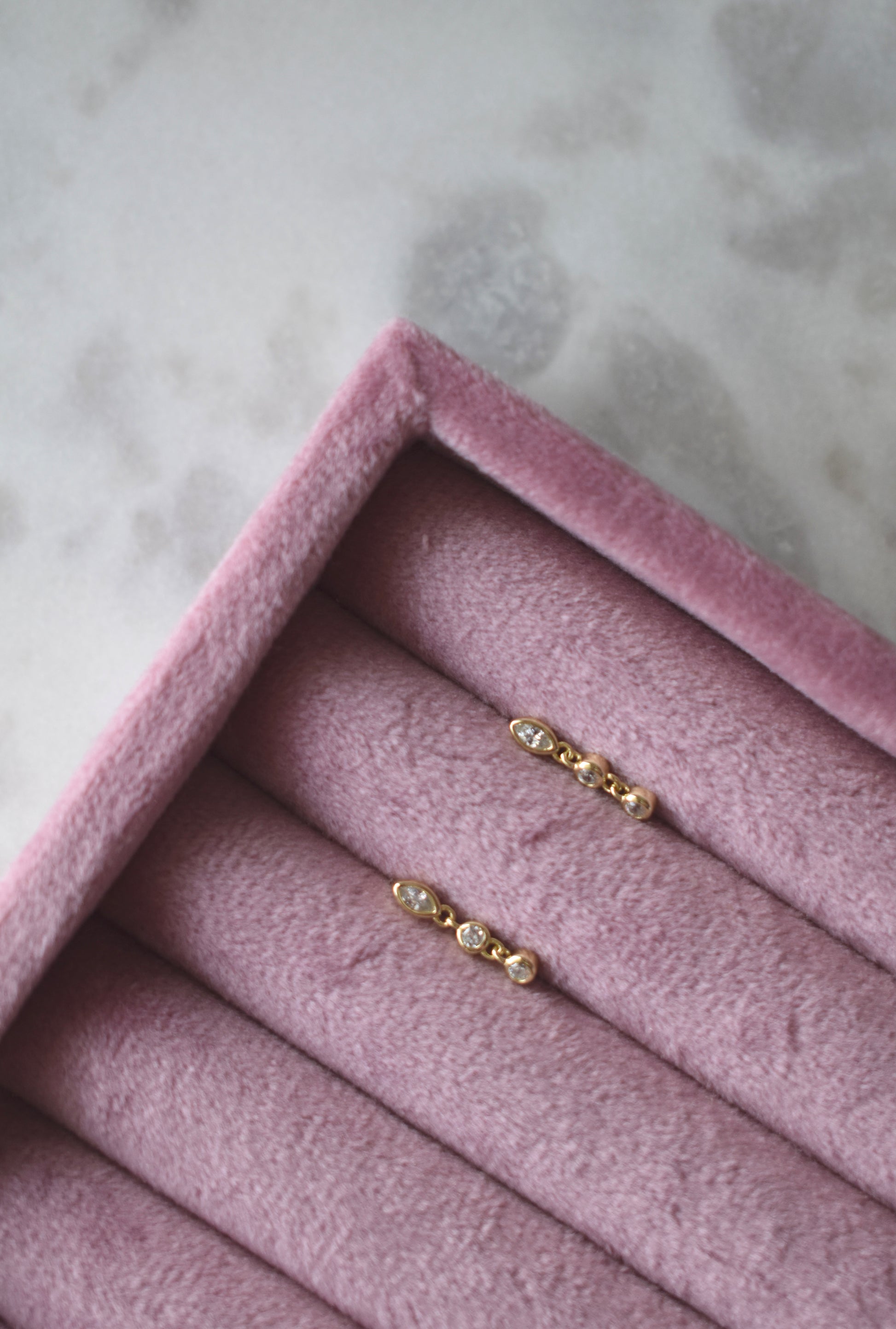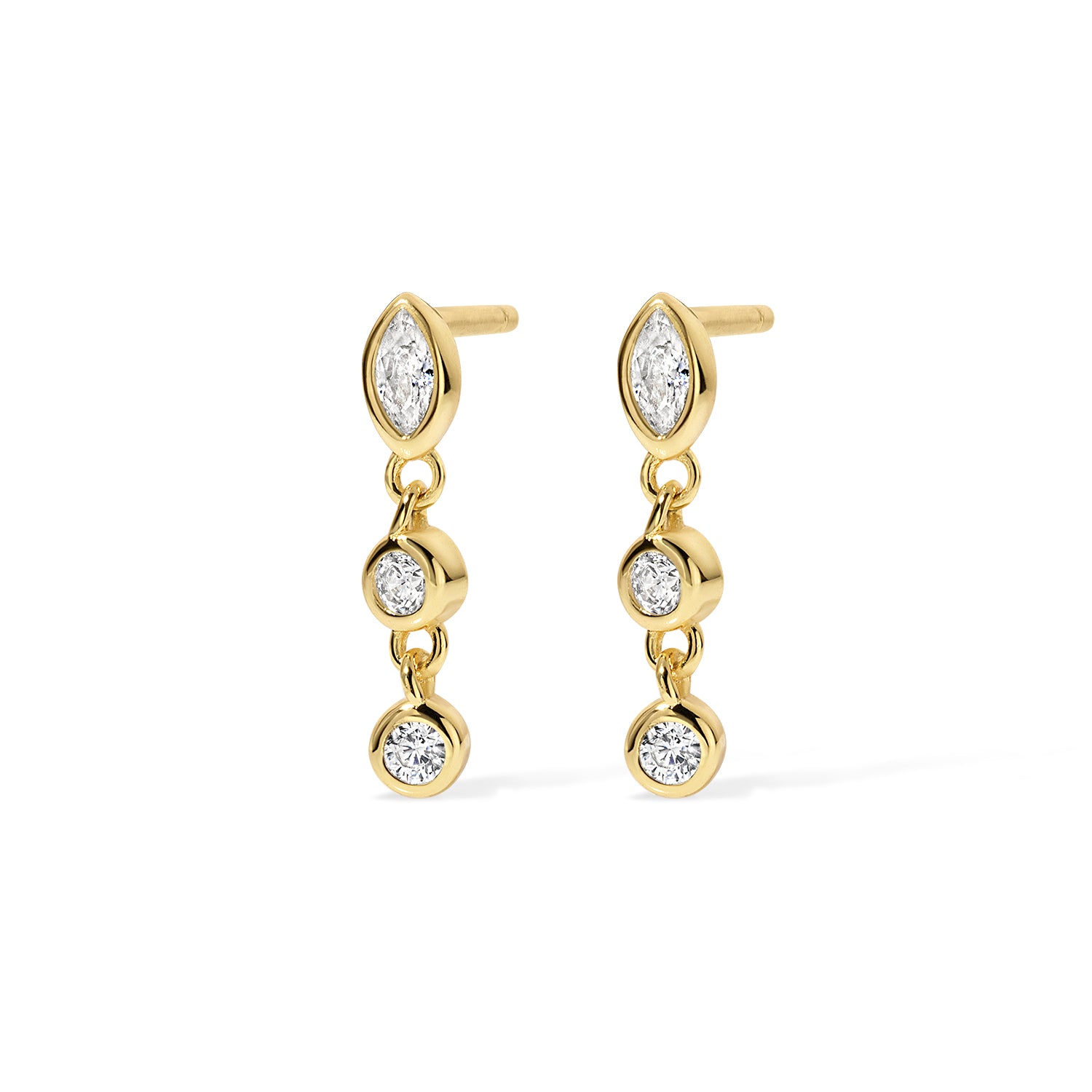 Introducing Remi — your go to dangle earring, reimagined with a triad of bezel-set stones. Wear alone or mix into your favorite earring stack.