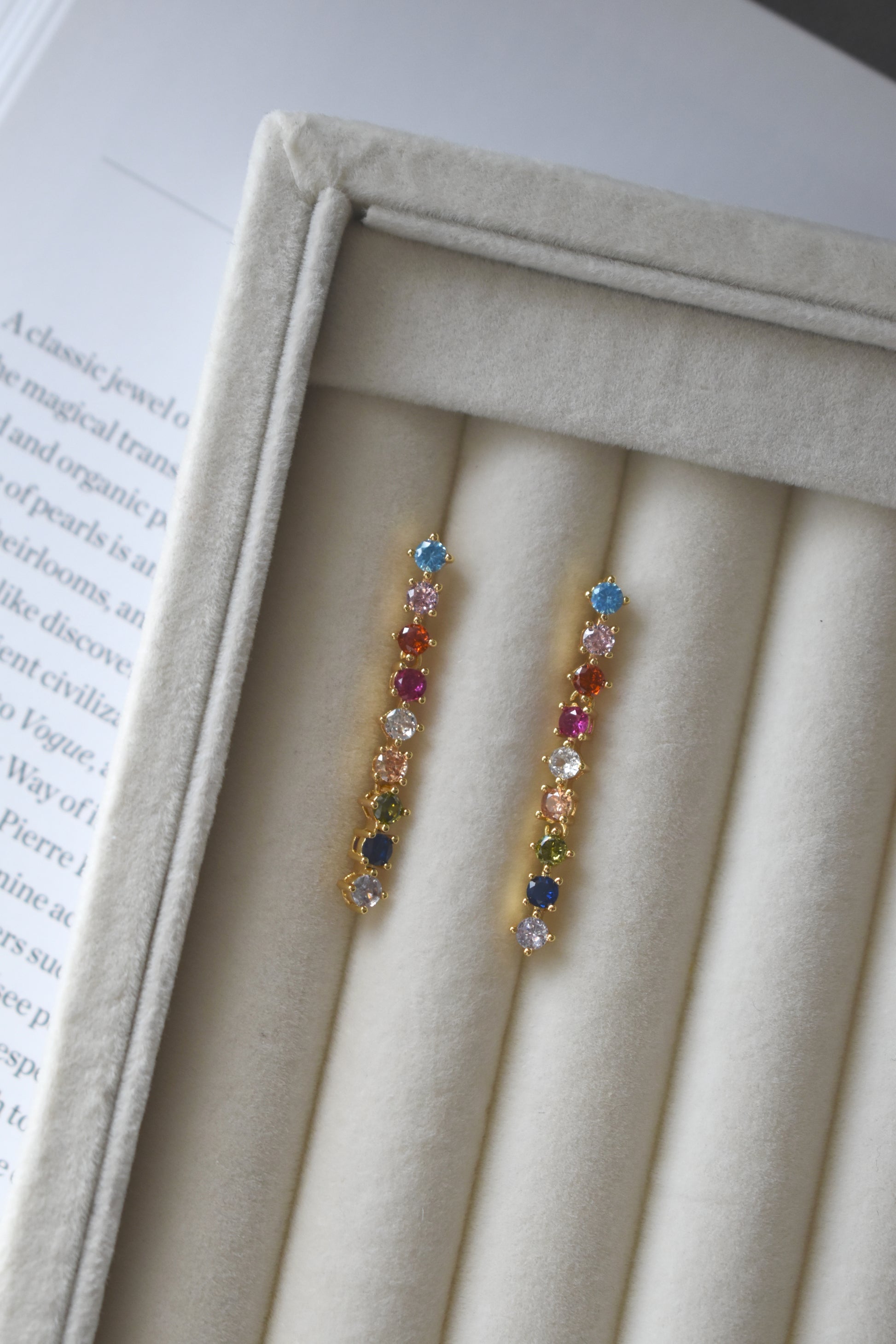 Elevate your stack with Swift - a fun drop earring featuring mixed-shape multicolor cubic zirconia.